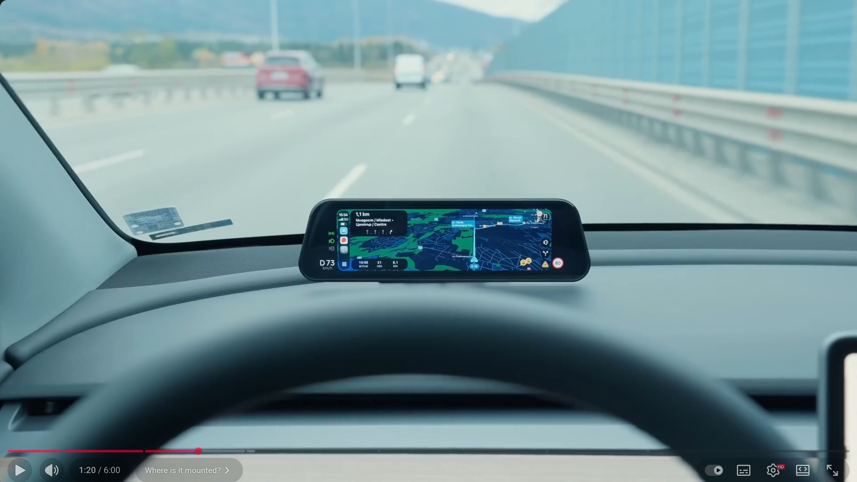 A: 기본 위치는 앞유리 바로 뒤, HUD처럼 보이는 지점이며, 원하면 같은 스탠드를 3M 테이프로 스티어링 휠 뒤에 장착해 전통적인 클러스터 위치로도 설치할 수 있다.