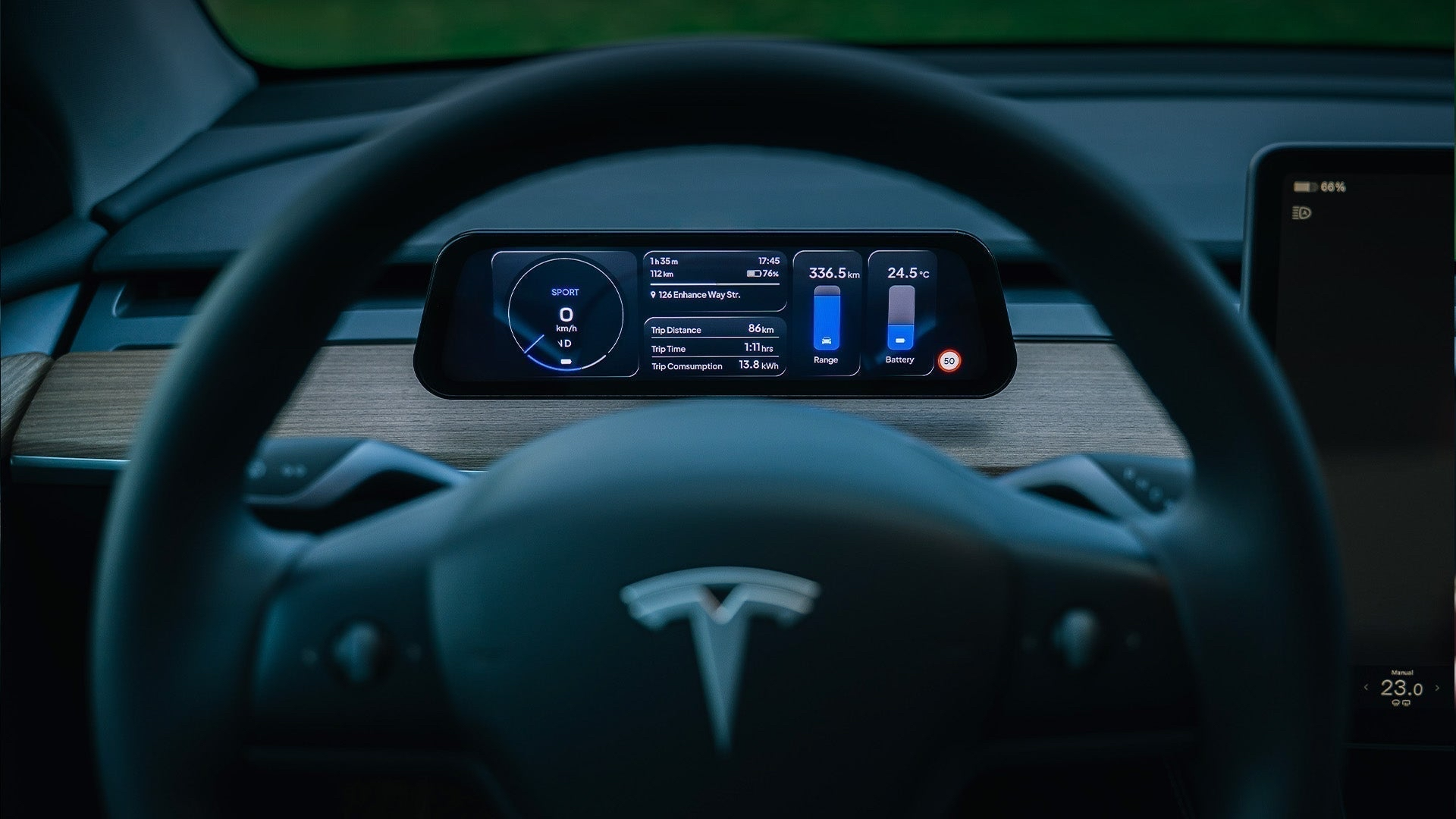A: 전체 지도 스트리밍은 테슬라 CAN/공식 API 구조상 불가능하지만, 경로 진행률·도착 예정 시간·도착 시 예상 배터리 잔량을 보여주는 실시간 내비 요약 위젯을 제공한다.