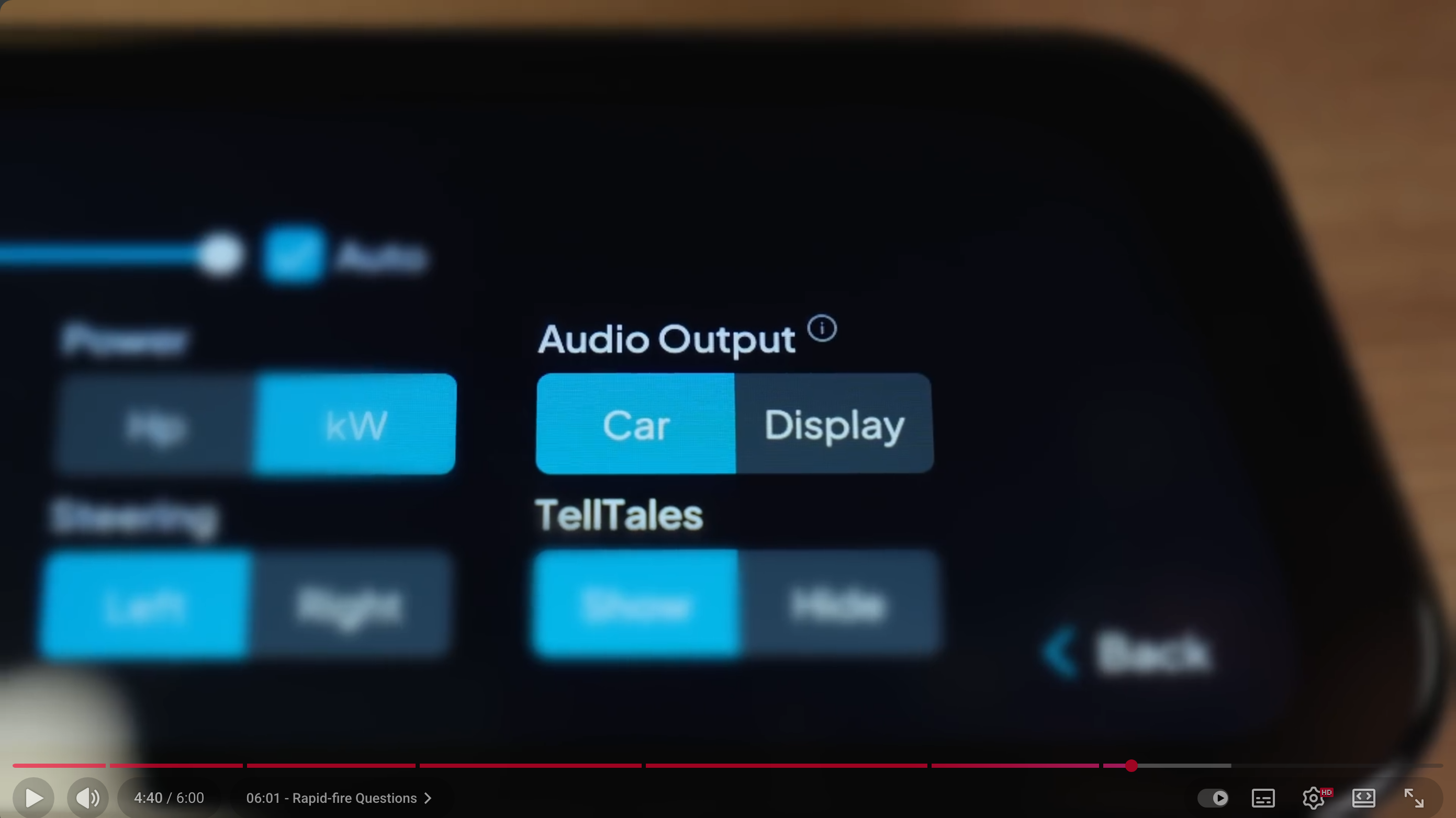 A: 테슬라 차량 스피커 또는 Dash 자체 스피커 중에서 원하는 쪽을 선택할 수 있다.